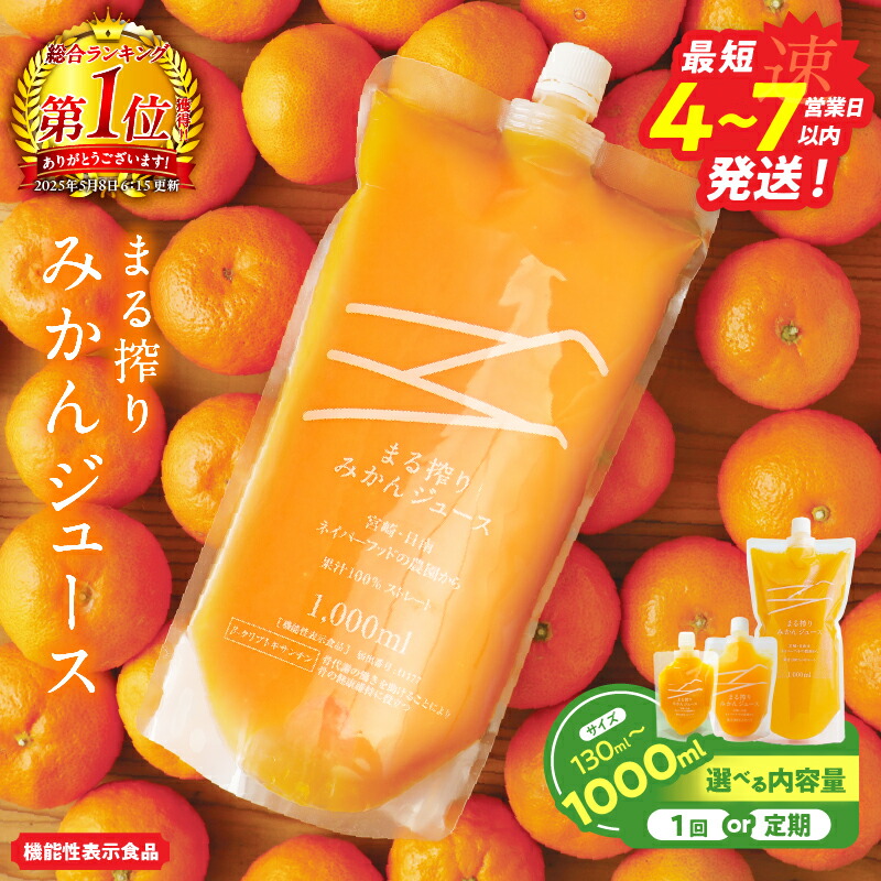 宮崎県日南市の果汁100%まる絞りみかんジュース。